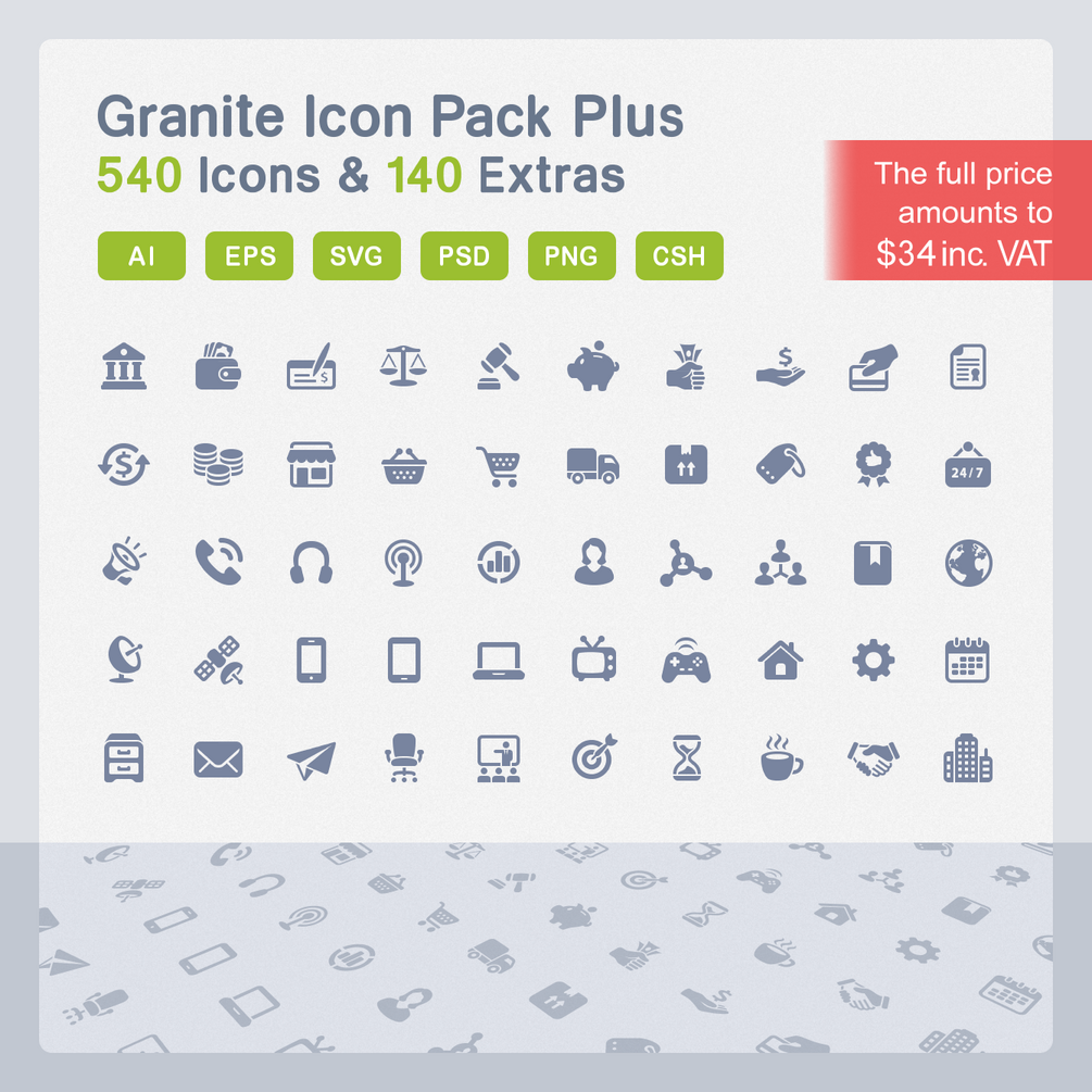 Granite Icon Pack Plus - 540 Glyph Vector Icons & 140 Extras